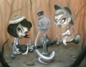 Загородный проспект д.28. В этом тихом дворике, прямо на детской площадке установлены скульптуры шахматным фигурам, которые ассоциируются с Алисой в Стране Чудес.