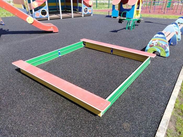 Размер и форма песочницы могут быть произвольными, но стандартными размерами являются 1,7 м х 1,7 м. Малышам понравится, если она будет раскрашена яркими красками. Песок должен быть чистым, поэтому перед использованием его необходимо просеять. Для защиты песка от дождя, мусора, а также братьев наших меньших удобно иметь специальную крышку.