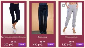Помимо брюк и шорт, здесь же вы можете найти хороший выбор другой одежды для привлечения ещё большего количества клиентов и покупателей. В ассортименте швейного предприятия, халаты, платья, костюмы, сарафаны, туники, рубашки, футболки, блузы, толстовки, водолазки, ночные сорочки, пижамы. Заходите на сайт, чтобы ознакомиться с полным каталогом продукции, расценками, акциями, контактами для связи.