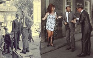 - Передний план (люди и волк)