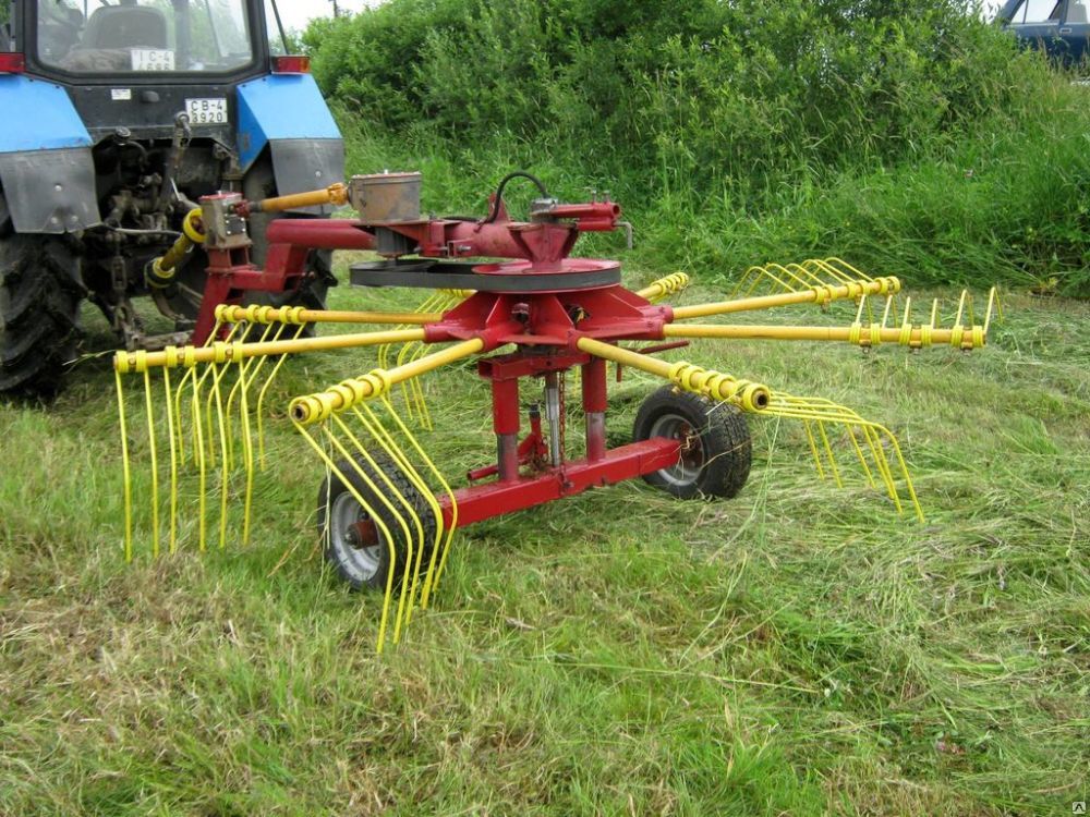 Грабли-ворошилки на трактор: необходимы для сбора скошенной травы в валки, улучшения её сушки на поле.