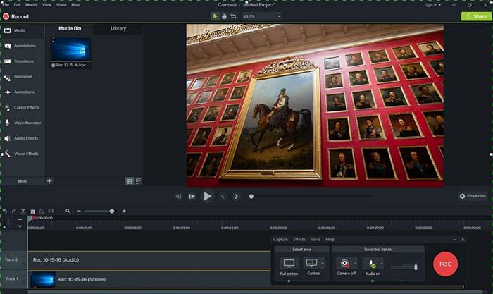 Простое, но довольно дорогое программное обеспечение с базовыми функциями редактирования. Предлагает несколько вариантов работы, дополнительную подсветку курсора или добавление звука клика мышки. Без покупки полной версии ПО можно будет создать файл продолжительностью не более одной минуты.
