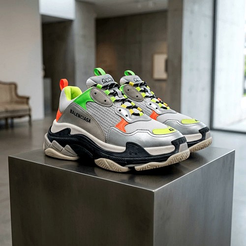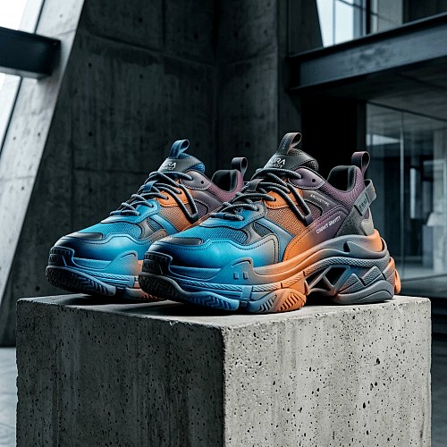 - Triple S.2 gradient sneaker: Обновленная классика, где цветовой переход подчеркивает сложную архитектуру знаменитой многослойной подошвы, делая ее визуально еще более рельефной.