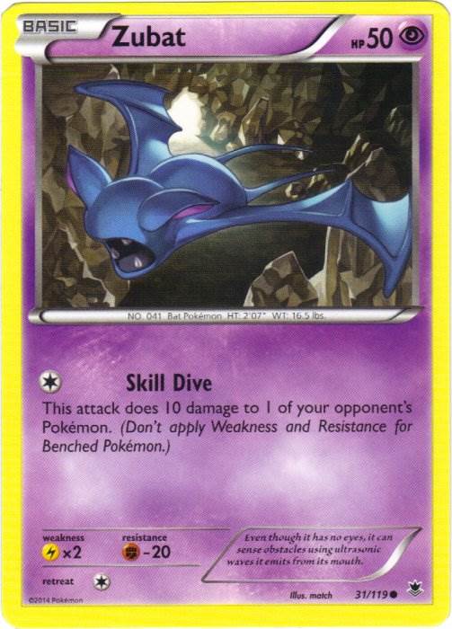Покемон Зубат — покемон, который выглядит как летучая мышь. Данный покемон относится к ядовитому и летающему типу. Зубат является первым в своей эволюционной форме. С ...