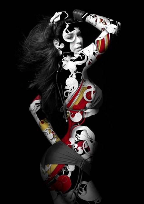 Люди, которые проходят через графическую обработку этого дизайнера становятся пёстрыми райскими птицами, которые удивительным образом могут слиться с окружением. Чудес...