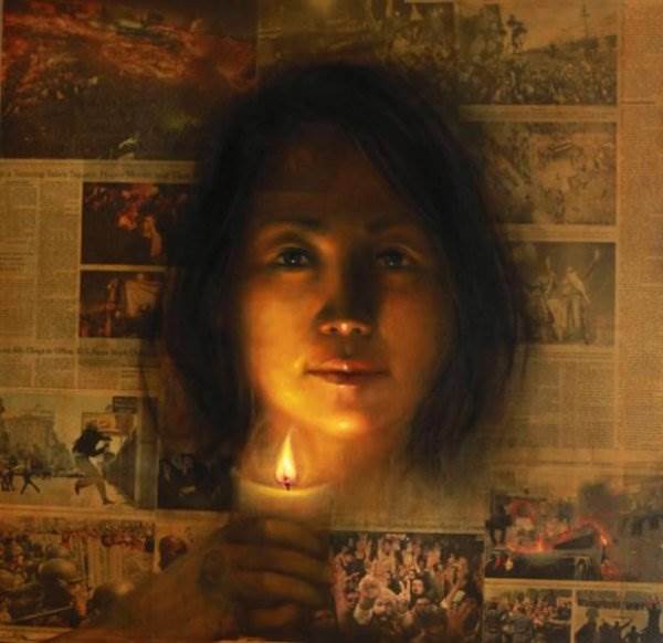 Художница Shin Young — портреты на газете