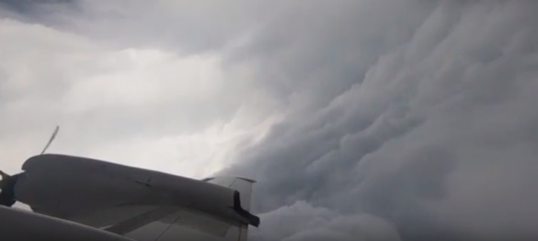 Самолёт пролетел прямо через «глаз урагана» видео