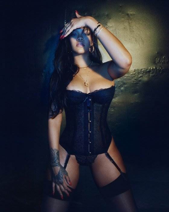 Рианна показала соблазнительное тело в чёрном бюстье фото