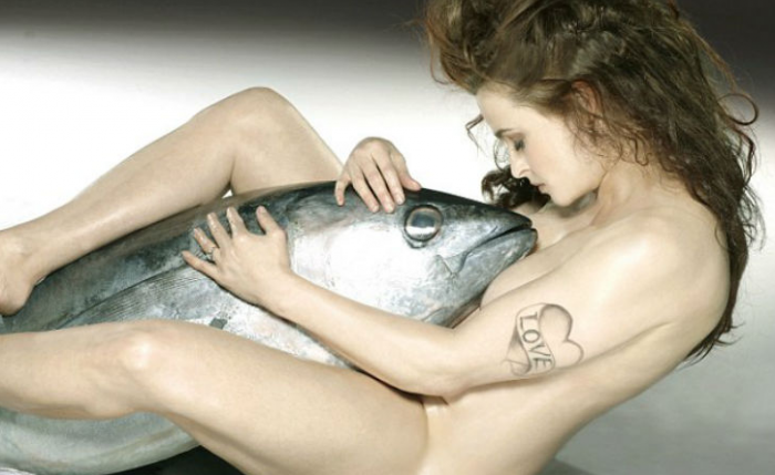 Обнажённые актёры снялись с мёртвой рыбой (15 фото)