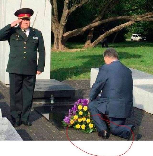 В социальных сетях активно обсуждают фото украинского президента Петра Порошенко. На одной из фотографий, где Порошенко преклоняет колени перед памятником жертвам Волы...