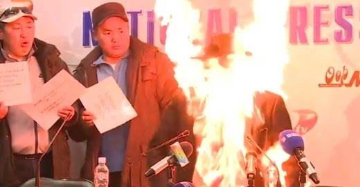В Монголии глава профсоюза устроил самосожжение видео