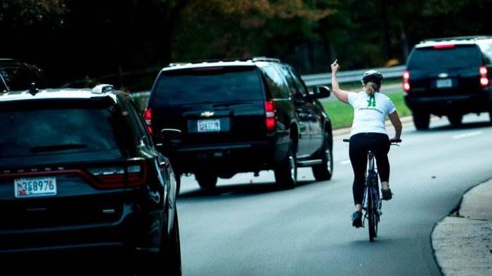 Велосипедистка, показавшая Трампу средний палец, лишилась работы