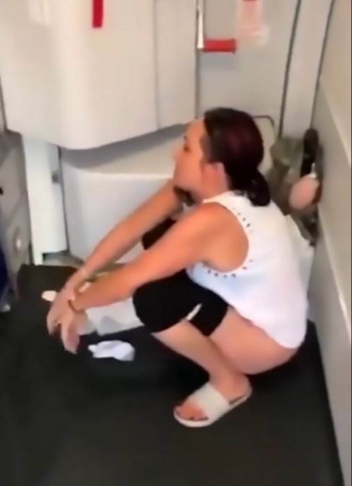 Женщина помочилась в самолёте прямо на пол видео