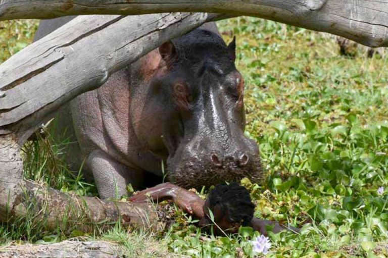 Бегемот напал на человека в Кении фото