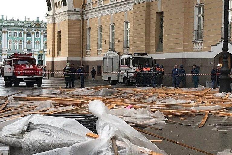 Обрушение строительных лесов у арки Главного штаба в Санкт-Петербурге фото