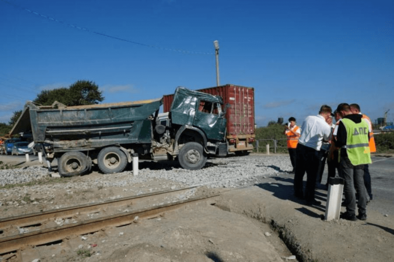 Столкновение поезда с «КамАЗом» в Южно-Сахалинске 7.08.2018 фото